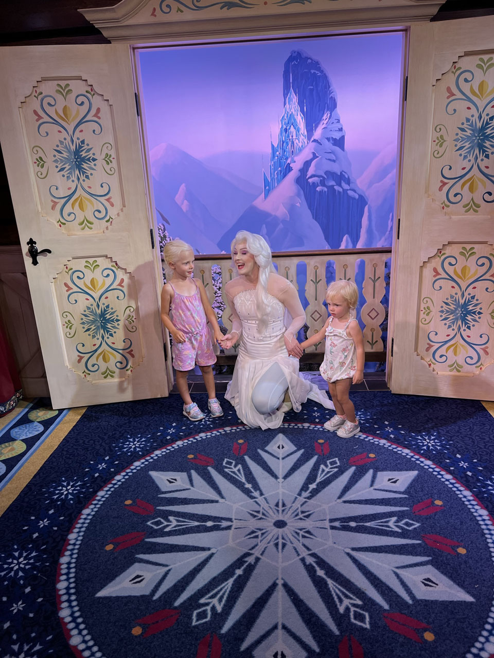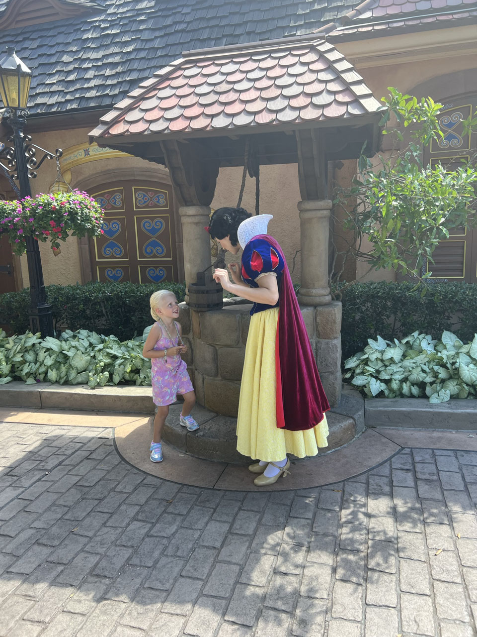 Taking the boat was also a mistake (learn from me!) because we didn’t have a ton of time and it took forever. The bus would have been a much quicker route. The friendship boat would have been a cool experience if we weren’t on a tight schedule, but we had to RUN to Norway to make it to our Genie+ reservation for Frozen Ever After (which was totally worth it, it was definitely the most fun ride we went on). The afternoon there was just very rushed and we were all exhausted, which was a shame because EPCOT was the park I was most excited to visit. The girls did get to meet Snow White and Elsa and Anna, so that made the trip worth it :). Meeting Disney princesses is a major highlight of EPCOT that I don’t think people even realize. They have Belle and Aurora in France, Snow White in Germany, Elsa & Anna in Norway, Jasmine in Morocco, and Mulan in China. This is such a cute addition to the already awesome World Showcase. I love that it ties together what the adults want to see and what the kids are there to experience. The true magic of Disney!
