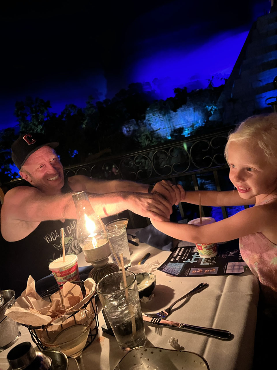 We ended our day at EPCOT with a nice dinner at San Angel Inn Restaurant which has the most amazing atmosphere (we also booked this one 60 days in advance). They have delicious Mexican food which was a nice change from the park food we had been eating. It was the perfect end to our day. We didn’t last for the fireworks at EPCOT because the girls (and the parents!) were just exhausted, but we did get to catch Magic Kingdom’s fireworks from our patio one last time.