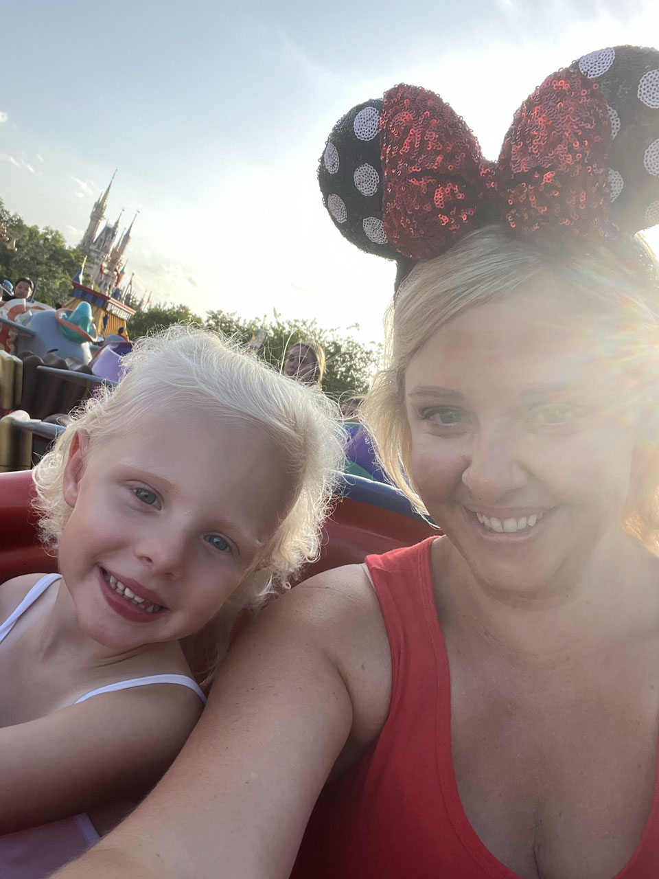 Once we were settled in our room and unpacked, we headed to Disney Springs. I think this is a perfect way to kick off a Disney vacation since you get a glimpse of the magic to come without having to pay for a park ticket. We started a family tradition of having dinner at The Rainforest Cafe on our first night. My girls absolutely love this restaurant at their ages because there is so much to see and we love it because the food is always great (and I love the atmosphere as much as the kids!). Make sure you make reservations in advance as wait times are crazy here. Once you have made a Disney resort reservation, you can book dining reservations 60 days in advance, which is highly recommended. After dinner and a spin on the carousel, we go shopping for our ears at World of Disney. You can definitely skip this step and just purchase your ears on Amazon for a much more affordable price! The ones linked look exactly like the ones I bought at Disney. Next, we get the girls some ice cream before returning to the resort for a full night’s rest before our busy day at Magic Kingdom! We did let them stay up a little bit later on this trip since we could see the boat parade and Magic Kingdom fireworks from our room. The resort even plays the music from the park in tune with the fireworks, it is such an amazing treat to witness this in your pajamas and then just go tuck yourself into bed. We were truly spoiled by this experience!