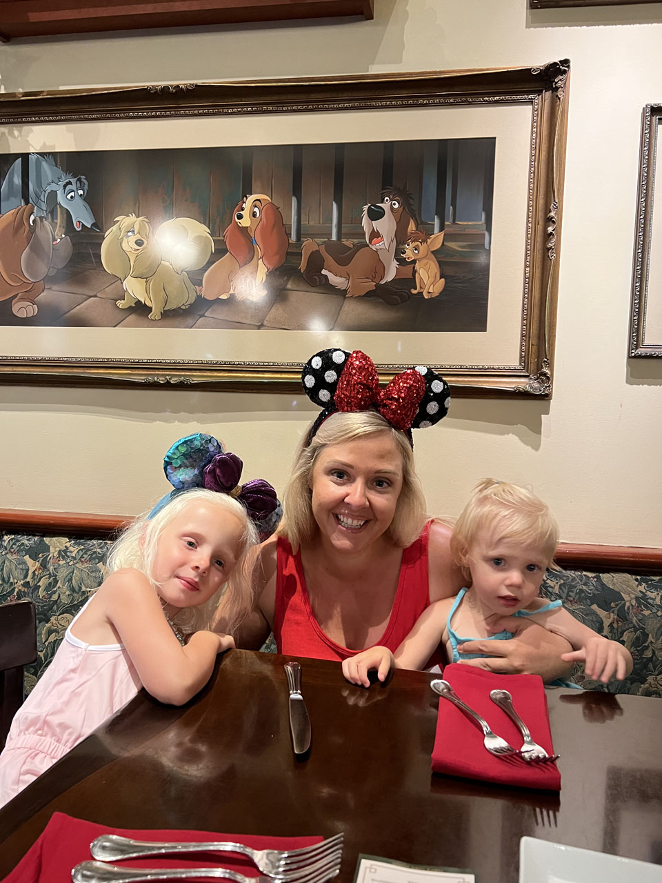 For dinner, there are magical options like Be Our Guest and Cinderella’s Royal Table, which I can’t wait to go to, but with our girls being so young, we decided on Tony’s Town Square for both of our trips. I absolutely love this restaurant. The food is delicious and the Lady & the Tramp theme throughout is so adorable. It is also in a great location for you to time your reservation so that you catch the fireworks right after dinner. You will be towards the exit and can catch the monorail right after the fireworks end before the huge crowds come (also important with young kids). After watching a magical fireworks show, we headed home completely exhausted but full of joy.