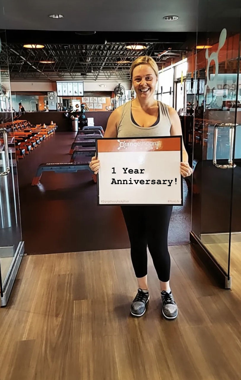 I think part of what addicted me to Orange Theory is that I’ve never had great self-esteem, and these coaches just pump you up and make you feel like you can do anything. Not only do the coaches offer words of encouragement, but all of your stats from classes are tracked in the Orange Theory app, so you can actually see the progress from all of the work you’re putting in. So it’s not like you’re there just trying to lose weight (although I’ve lost 15 pounds since I started!) but you’re seeing that you can run longer, row faster, lift heavier… it’s really cool! It actually reminded me that I loved playing sports when I was younger. I love the competitive aspect, even if I’m mostly just competing with myself. The absolute best part is seeing the progress I’ve made. I was able to run a mile without stopping this year. This may not seem like a big deal to a lot of people, but it was huge for me! I love the feeling of getting stronger and having more endurance. Such a huge lesson I’ve learned from this whole experience is that the biggest battle is in your mind. Knowing this and feeling myself push past my own boundaries has helped me become physically stronger, and also mentally stronger in other aspects of my life as well. I truly believe I’ve grown as a person outside of the gym from these workouts.