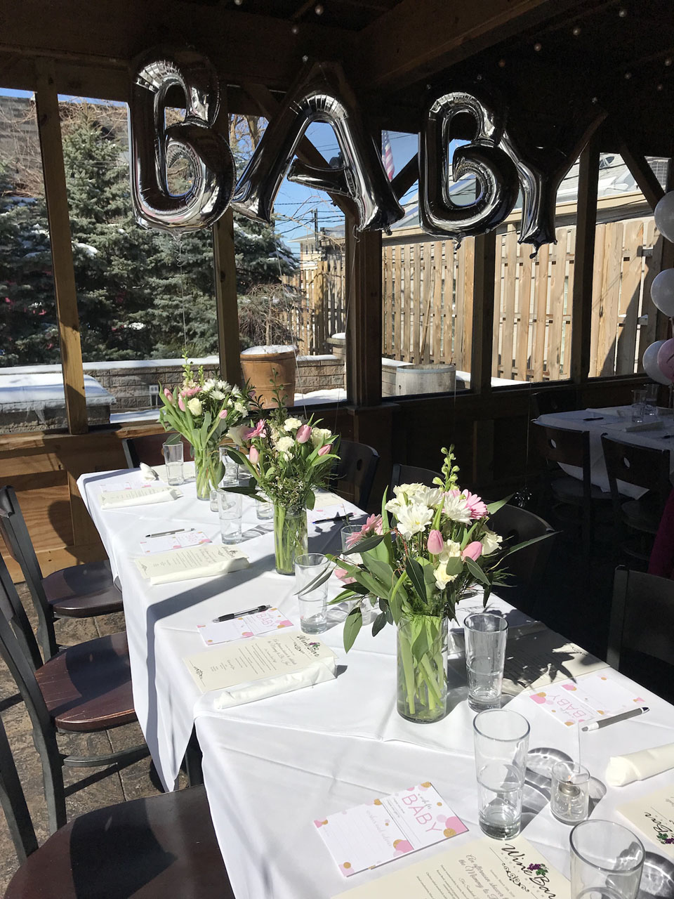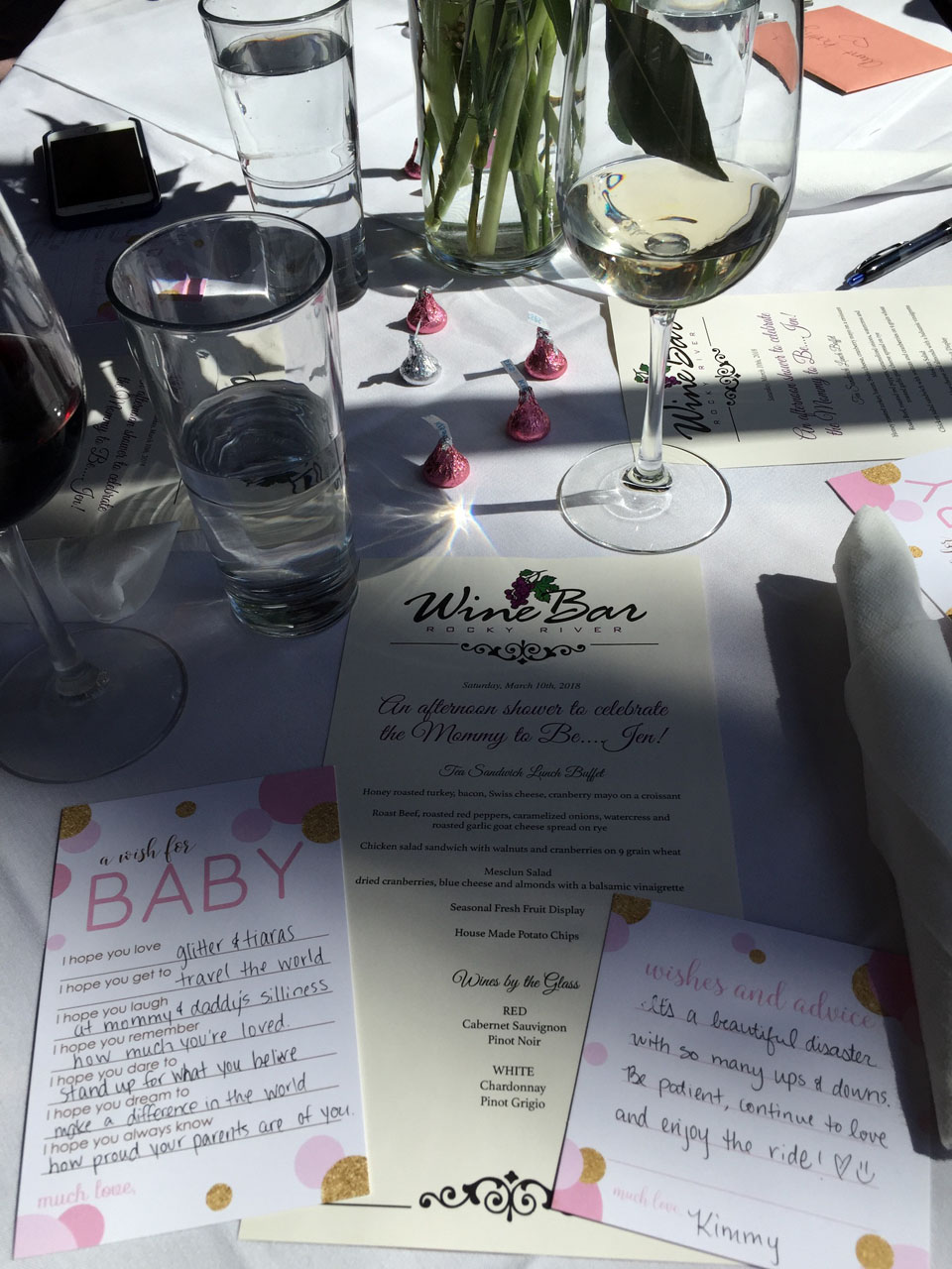 Picking a date and finding a location for the event is the first step to planning your shower. We had our shower at a wine bar in our town that had a beautiful fireplace and a glass enclosure with a beautiful view. We were very fortunate and had a gorgeous sunny day. It was still freezing at the end of March, so we had the perfect combination of being inside and warm but feeling like we were outside enjoying the weather.